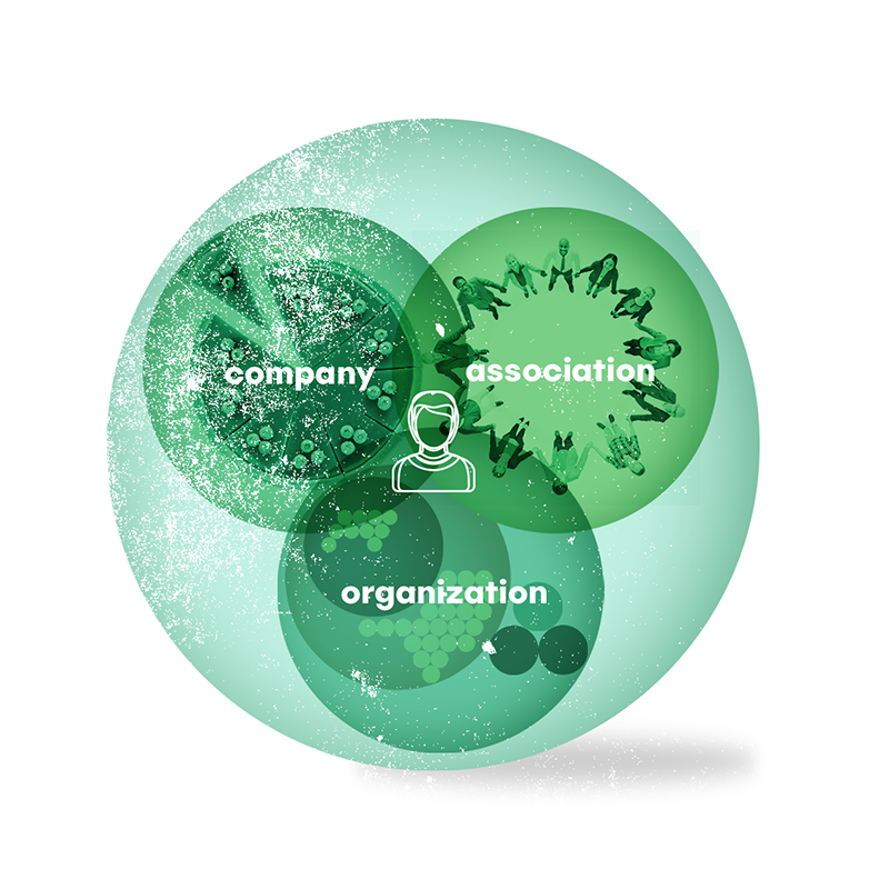 In a nutshell, a For-Purpose Enterprise differentiates between three containers: Organization (á la Holacracy), Company (legal and financial matters) and Association (the people and interpersonal matters).